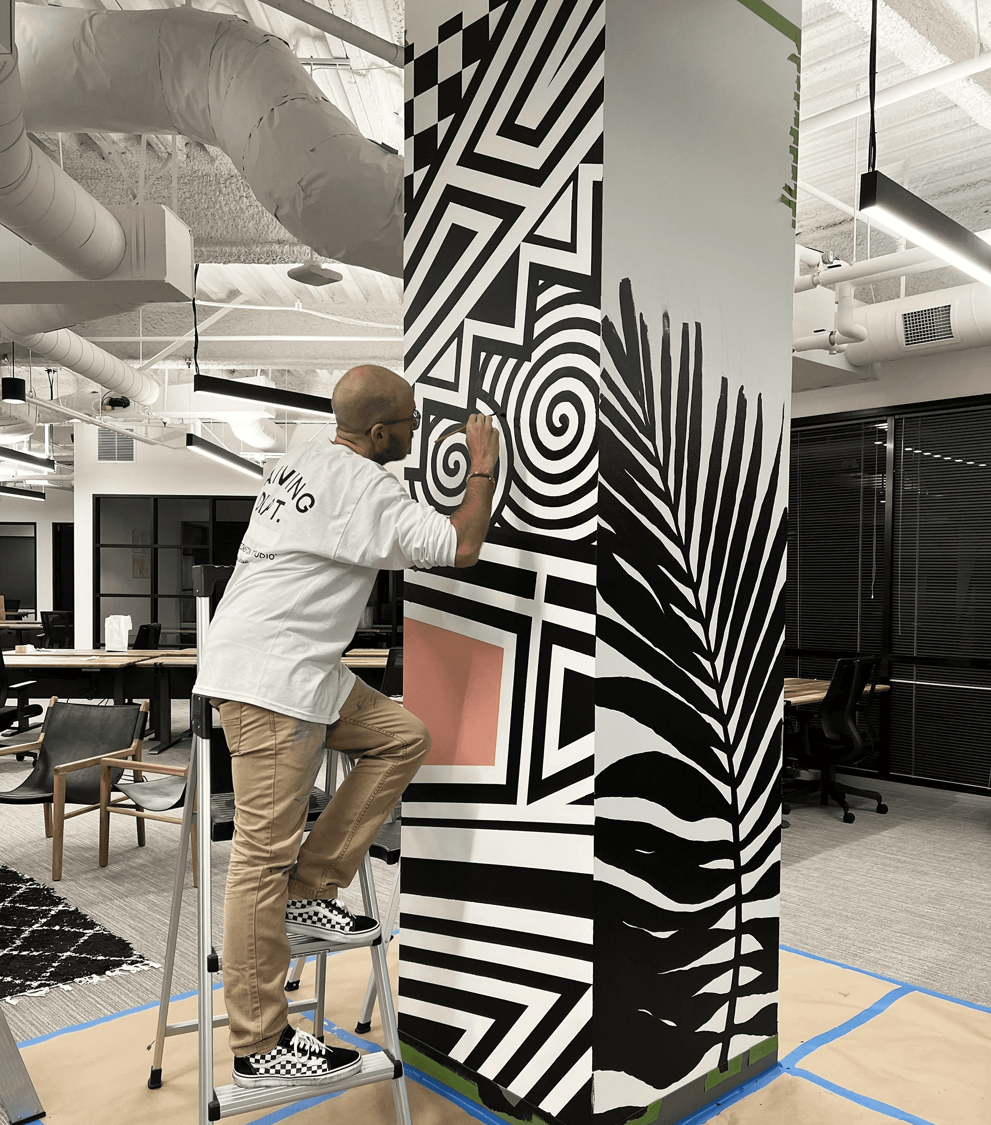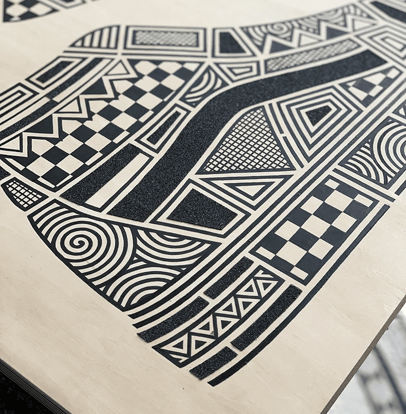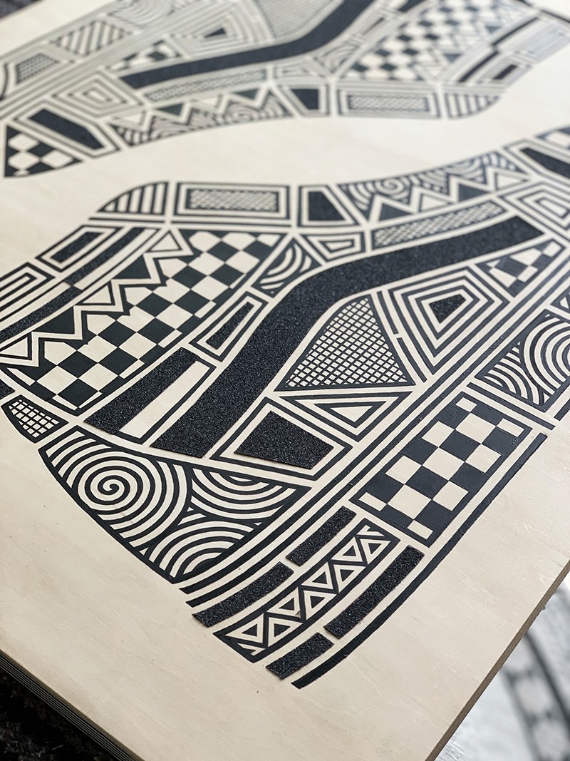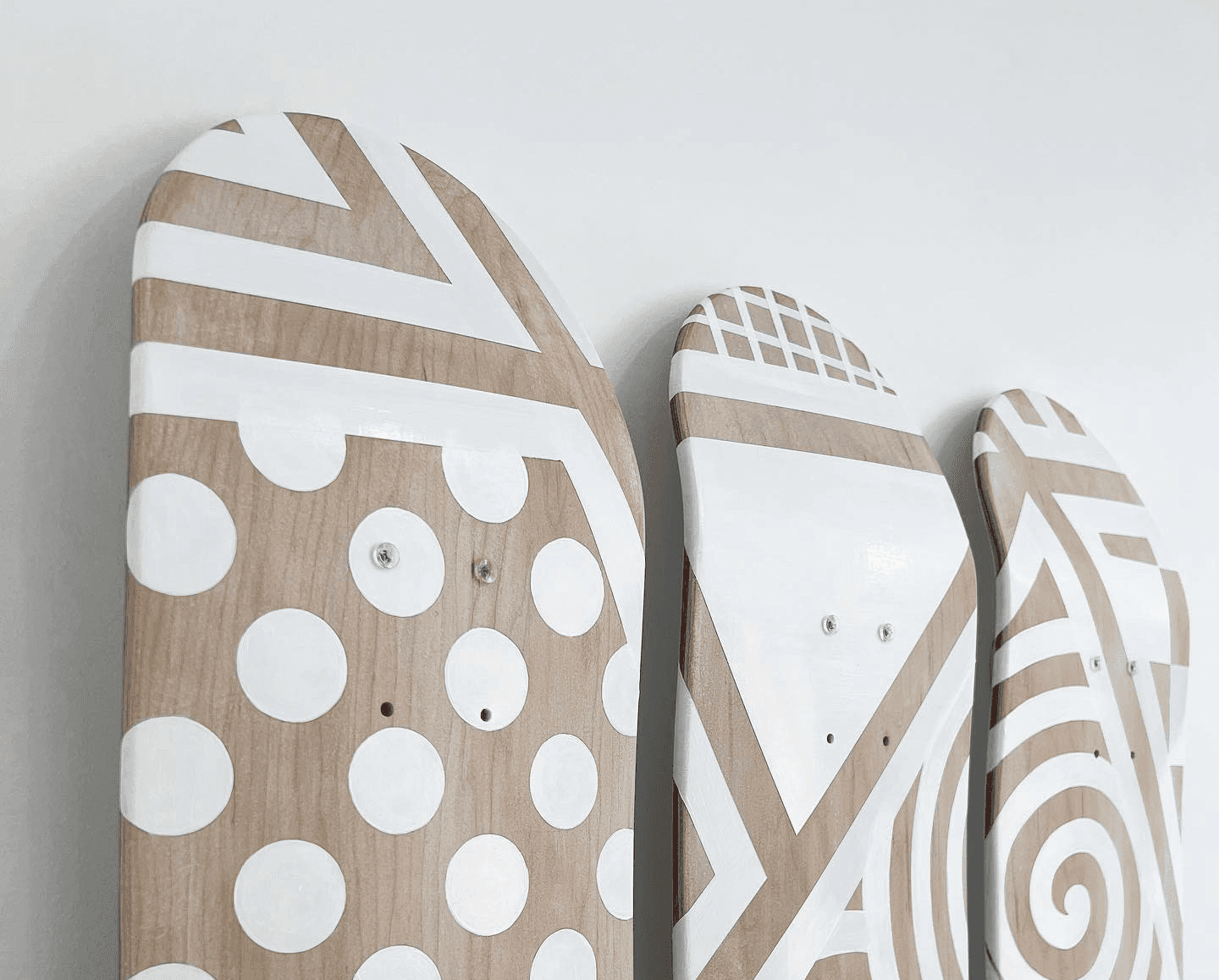 Devin's work is rooted in custom patterns, which he sees as a way to "create a universal conversation". An organic arrangement of shapes, reminding the viewer of a jigsaw puzzle, arranged to exist together yet separate. Evolving to this structured work took years of extermination and growth, working through different styles over the course of his life, leading to defining his series called SHAPED.